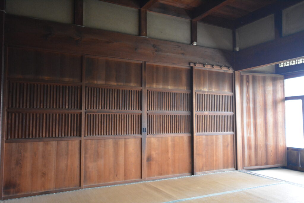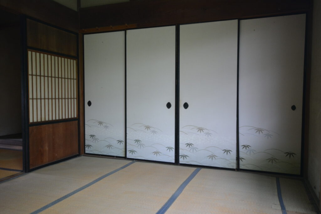 こちらに見える建具は玄関正面に移設して利用したり、寝室の間仕切り戸として再利用しています。
