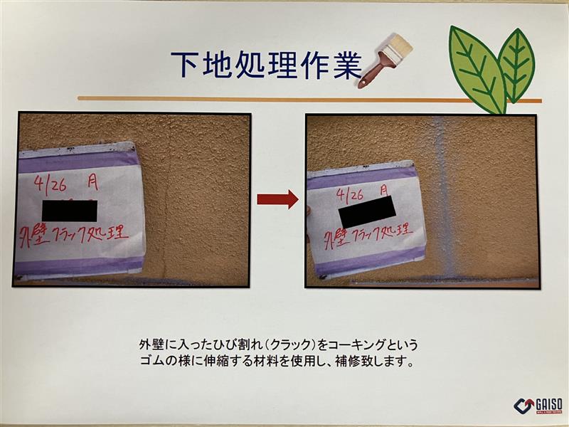 クラック(ひび割れ)を埋める、劣化しているコーキングを新しく打ち替える。