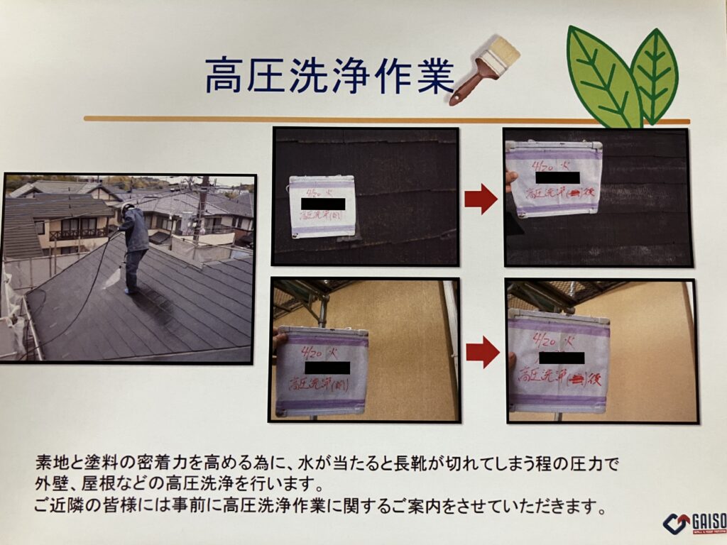 ②高圧洗浄 チョーキングやカビ、苔の除去
