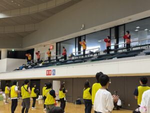 まず初めに準備体操で「エビカニクス」を踊りました!オーナー様もエビカニクスを予習していただき、当日は息を合わせて体操することができました。