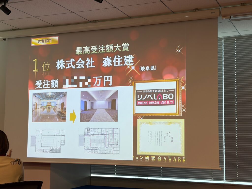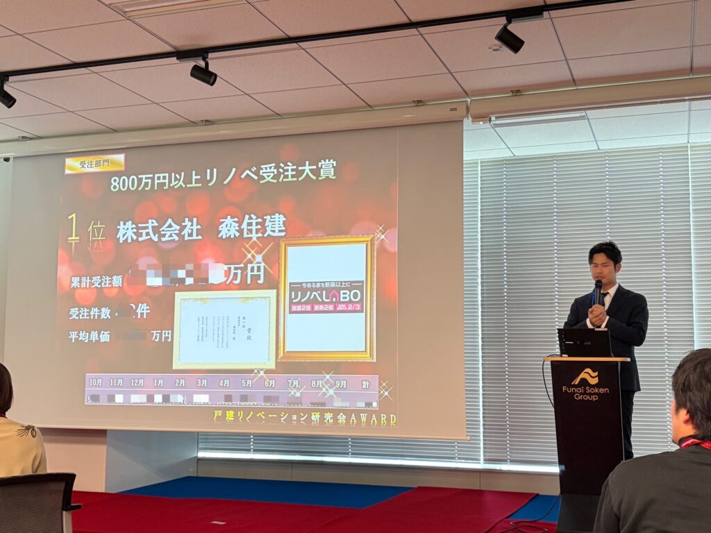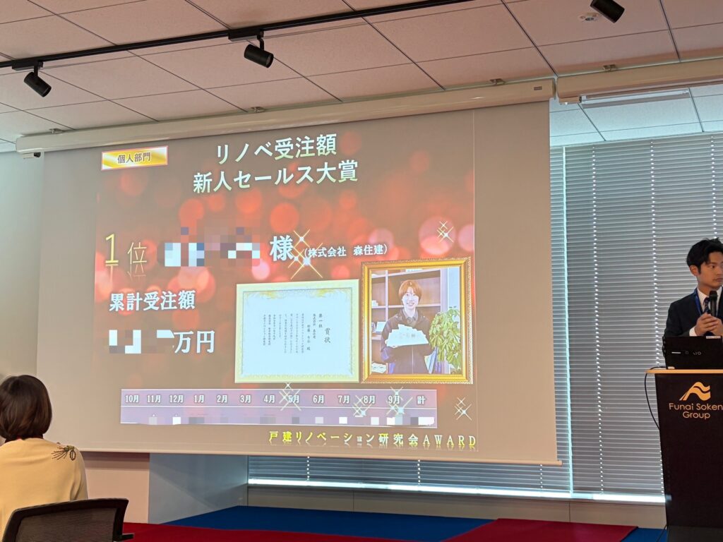 こちらの賞は入社2年以内でリノベの累計受注額が多かった社員に送られる賞で今年は弊社スタッフが全国1位を頂きました。