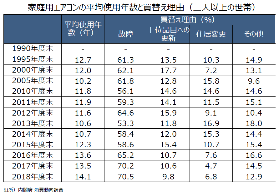 平均使用年数は約14年、買い替え理由は『故障』が7割以上。