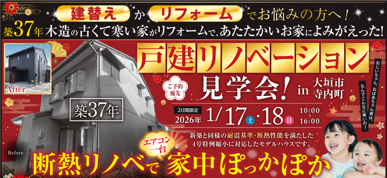 古くて寒い家を、リフォームで「ぽっかぽか」のあたたかいお家に蘇らせた、築37年の戸建リノベーションモデルハウスの見学会を2日間限定で開催します!
