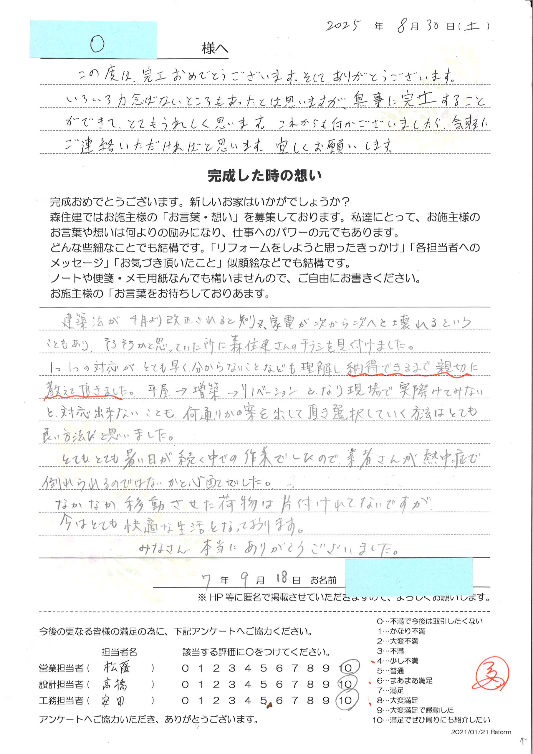 K様邸 お客様の声