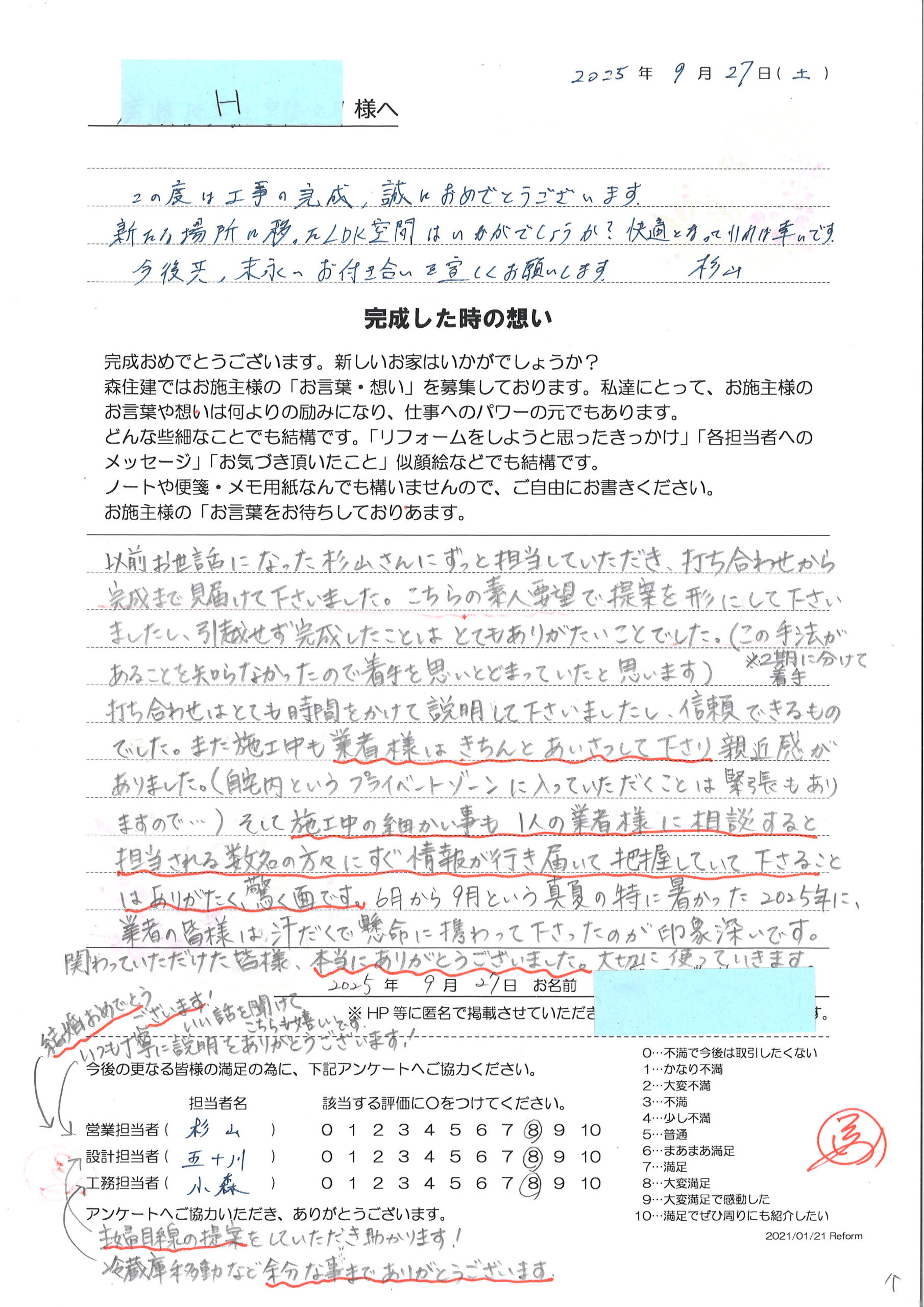 そして、森住建にご依頼頂き、誠にありがとうございます。