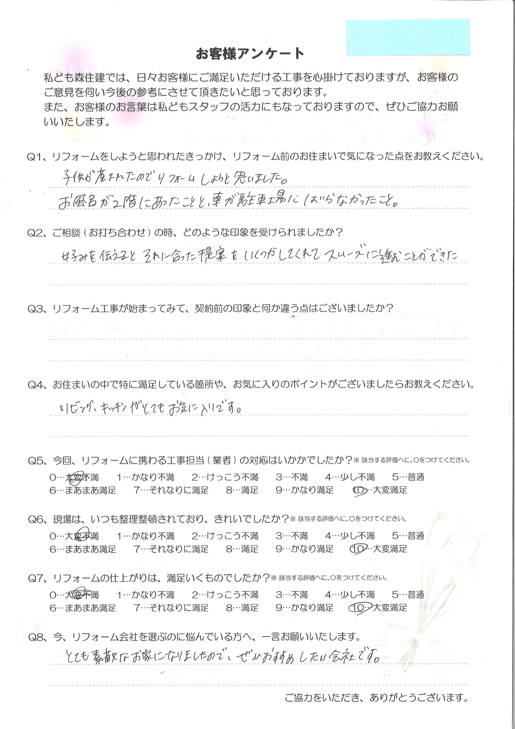 業者の方々も、よりよい家になるように、その時々に提案をしていただき、本当にまんぞくのいく家になりました。