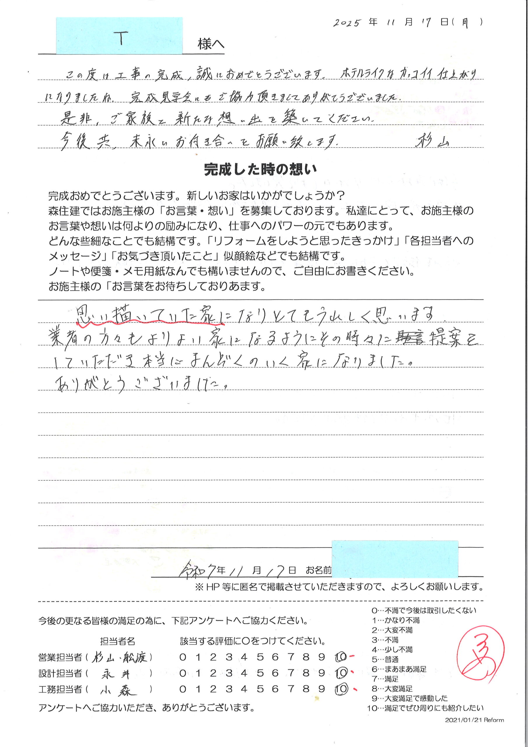完成見学会のご協力いただきまして、誠にありがとうございました。