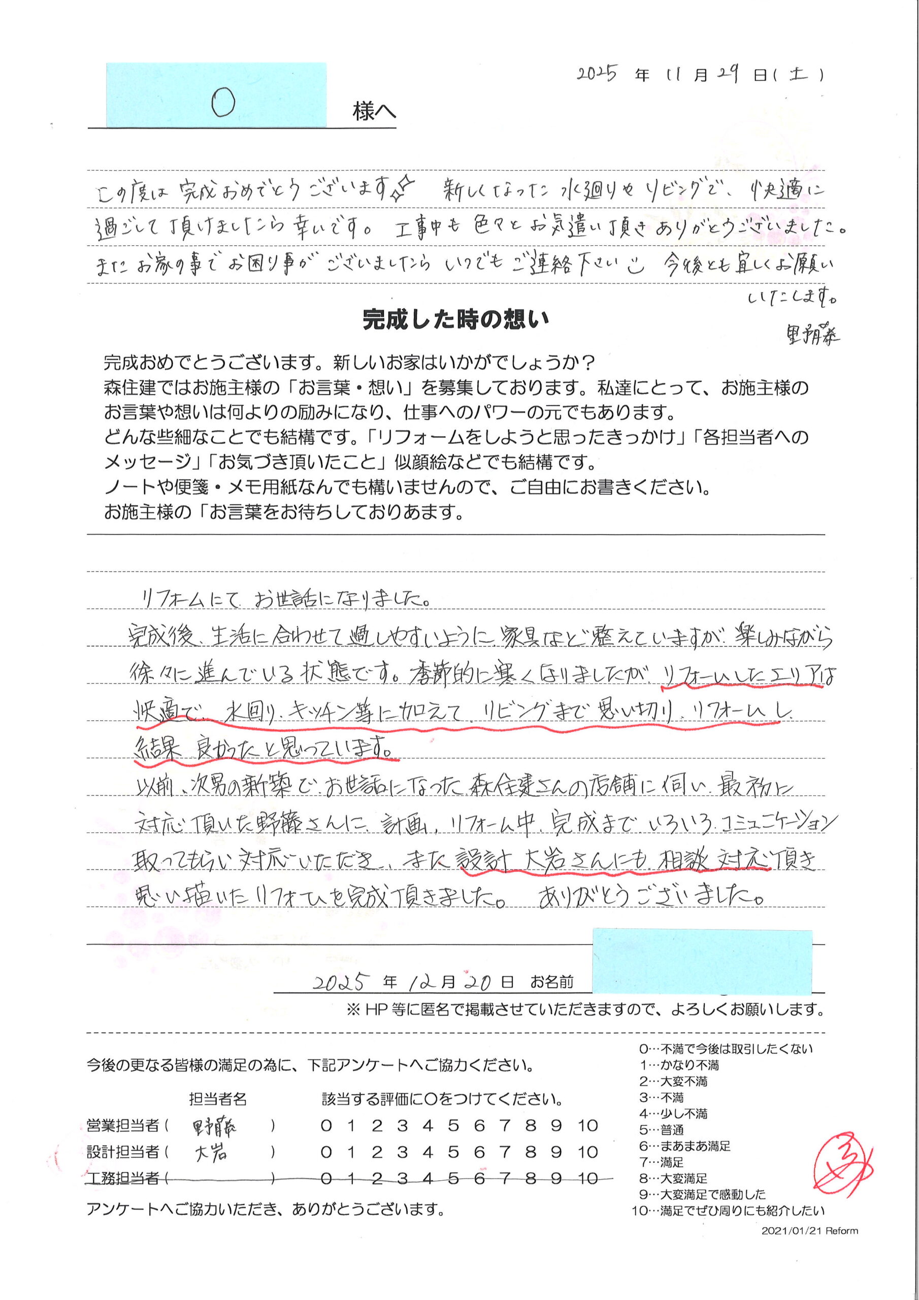 K様邸 お客様の声